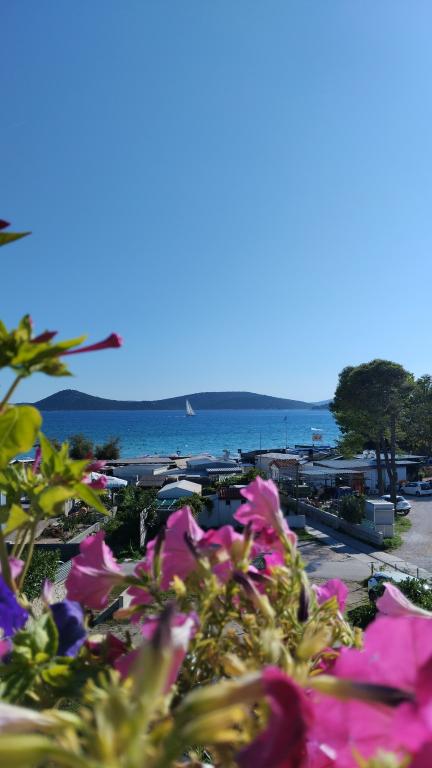 Две квартиры на втором этаже семейного дома прямо на Голубом пляже. Двухкомнатная квартира была недавно отремонтирована, а однокомнатная квартира была декорирована только в прошлом году. Пляж находится примерно в 70 метрах от дома, а центр города — в 600 м. На пляже есть многочисленные заведения общественного питания и детские сооружения, а также специально обустроенный пляж для детей. Пляж перед домом песчаный, а чуть дальше, примерно в 20 метрах, — галечный. Вход в квартиру. возможен выезд после 12:00 до 10:00.