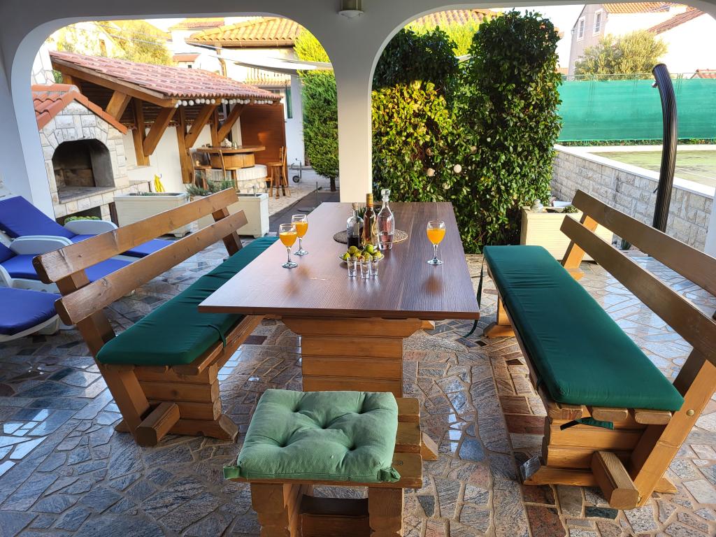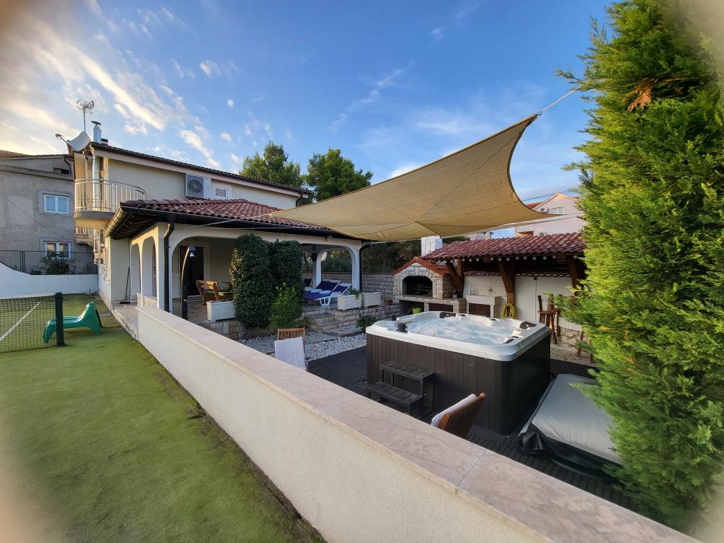 Весь дом только для вас! Рай для семей! Добро пожаловать на виллу Мелоса! Комфортабельный дом для отдыха в Водице с собственным теннисным кортом. В доме могут разместиться до 10 гостей. В доме 5 спален, 3 ванные комнаты, кухня, гостиная и просторная терраса, где можно отдохнуть и насладиться барбекю, а также джакузи на открытом воздухе на 5 человек. В доме есть кондиционер. На территории имеется 3 парковочных места, два из которых находятся в крытом гараже. Вся территория огорожена, поэтому вы можете быть уверены, что дети не выйдут на дорогу и смогут беззаботно играть в просторном дворе.
