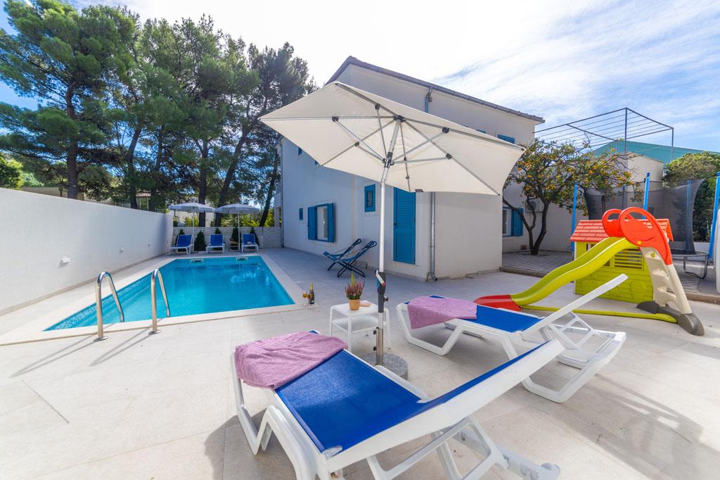Бассейн, вокруг которого есть место для принятия солнечных ванн и отдыха, а также детская площадка. В дополнение к нашему гостеприимству и радушию, в цену включены местные далматинские продукты в виде еды и напитков в знак приветствия. Мы предлагаем бесплатную помощь с информацией и организацией мероприятий, связанных с вашим отпуском. Мы доступны с 0 до 24 часов для любых запросов и просьб.