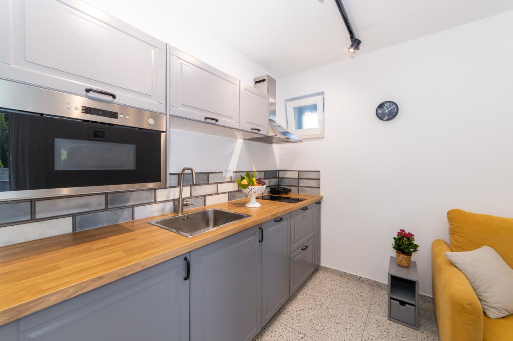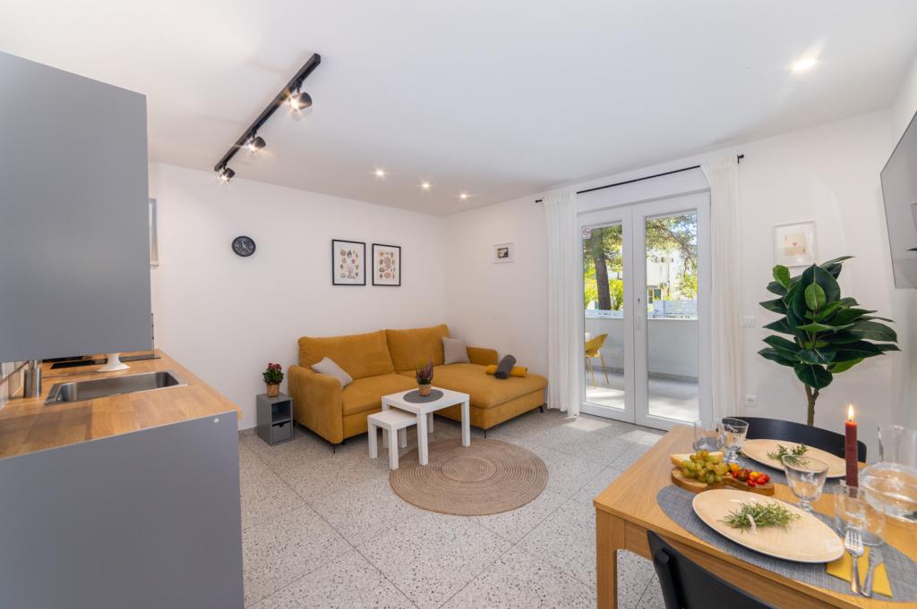 Красивая, современно обставленная квартира с качественной кухней, спальней с новой современной мебелью и удобной кроватью, а также красивой, стильной ванной комнатой. Очень приятный, вежливый хозяин, всегда поможет, даст много советов и информации, очень гостеприимный. Бассейн не виден с улицы, совершенно новый, в постоянном хорошем состоянии. Короткие расстояния до моря, ресторанов и магазинов. Собственное парковочное место на территории. Спасибо за чудесный и расслабляющий отдых.