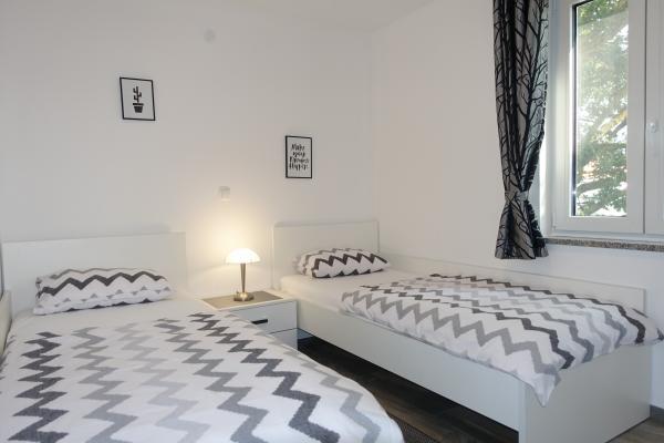 Рядом: - Туристический курорт «Затон» - 60 м - Детская игровая площадка - 20 м - Кофейня - 20 м - Ресторан с полупансионом - 30 м - Пекарня - 40 м - Киоски с пляжными принадлежностями - 40 м - Тренажерный зал на открытом воздухе - 40 м - Задар - 12 км - Нин - 1 км На пляже есть душевые, раздевалки и туалеты. На пляже можно арендовать шезлонги, зонтики, катамараны и другие принадлежности. В радиусе 100 км находятся национальные парки: Пакленица, Корнати, Плитвицкие озера, Крка и Северный Велебит.