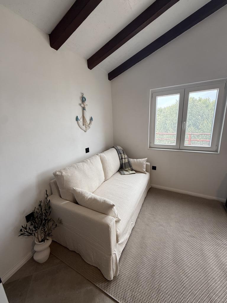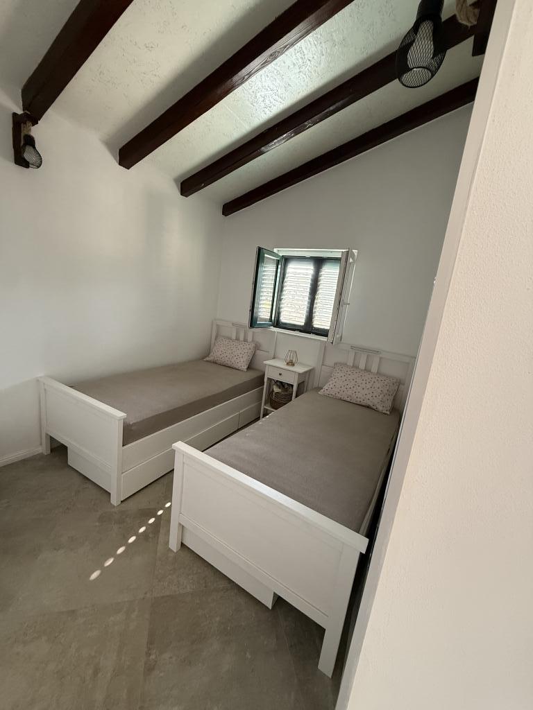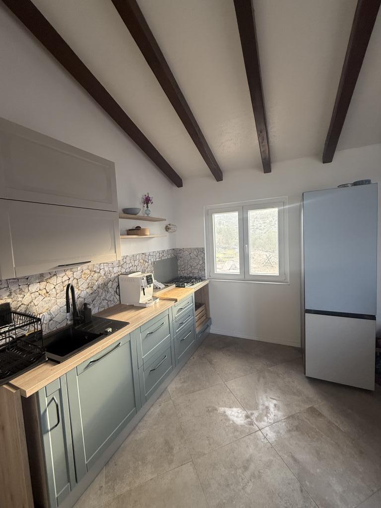 Недавно отремонтированный дом для отдыха «Кула» расположен в тихом оазисе в бухте Бизиковица на острове Жут. Дом находится в уединенном месте, в 20 метрах от моря и набережной. С террасы открывается прекрасный вид на море. Идеальное место для отдыха души и тела. В доме две спальни, ванная комната с душем, оборудованная кухня и большая терраса. В доме есть водопроводная вода, источником которой является дождевая вода, не предназначенная для питья, а используемая исключительно для душа и мытья. Воду следует использовать рационально, на острове вода – жидкое золото. Электричество подается от солнечных батарей, 12 В. Лучшие рестораны, яхтенная пристань ACI и рынок расположены в соседней бухте, до которой можно