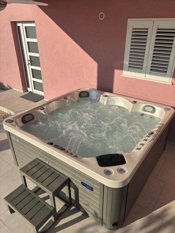 Тихий и приятный уголок для вашего отдыха. Мы находимся в небольшой деревне Подлуг, в 6 км к югу от Бенковаца, в 2 км от съезда на Бенковац с автомагистрали А1. Мы предлагаем три спальни и три ванные комнаты. На первом этаже находятся одна спальня, ванная комната, кухня и гостиная, а на втором этаже — две спальни, две ванные комнаты и еще одна гостиная — игровая. В здании также имеется комната с камином. На территории комплекса также имеется открытый бассейн размером 8 х 4 м.