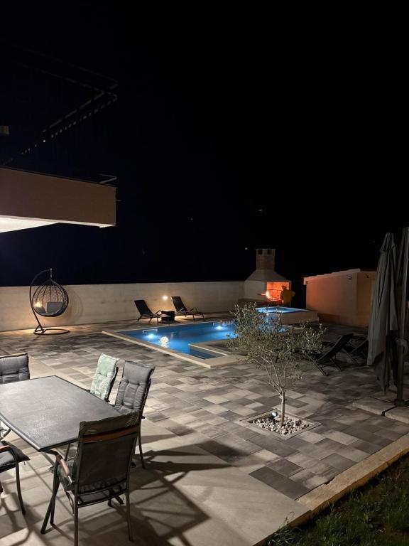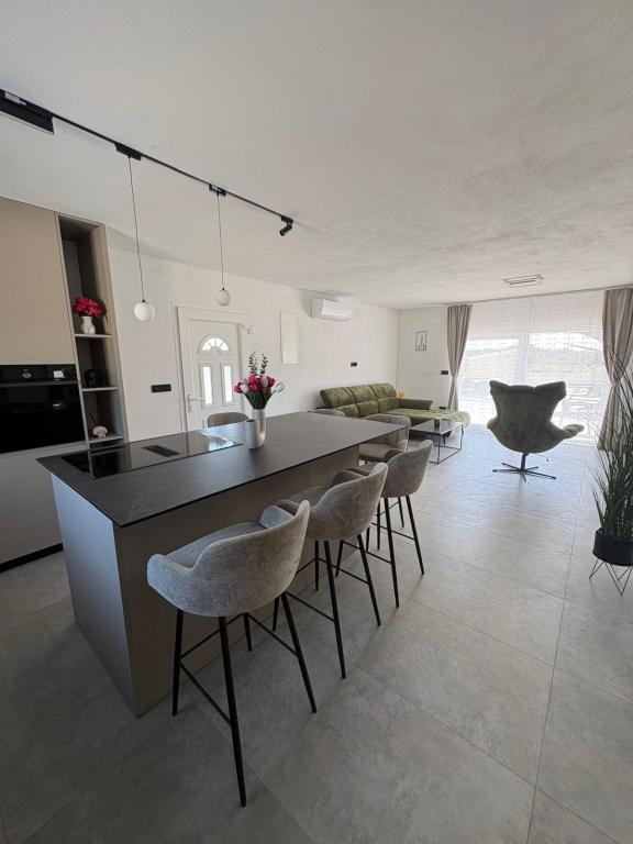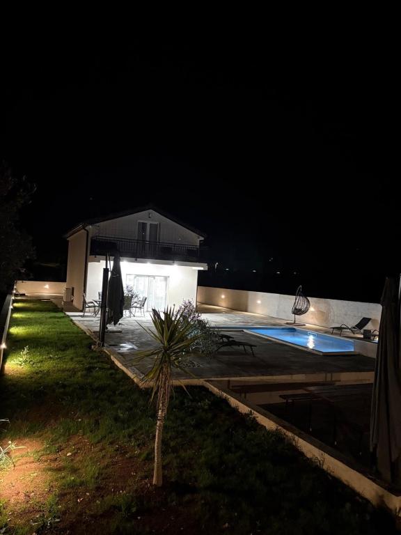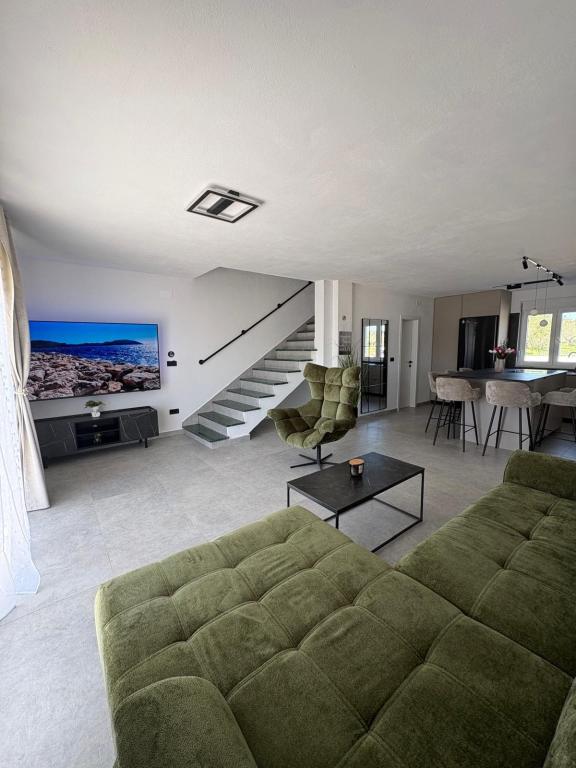 Дом для отдыха расположен в самом сердце оливковой рощи, всего в 2 км от моря, и является идеальным местом для полноценного отдыха в тишине и покое. Окруженный природой, он обеспечивает ощущение уединения вдали от городской суеты. Особую атмосферу создает подогреваемый бассейн, идеально подходящий для наслаждения весенними и летними днями. Просторный сад идеально подходит для семейного отдыха. На первом этаже дома расположены 3 спальни с двуспальными кроватями и небольшая ванная комната. Третья спальня также имеет балкон с прекрасным видом на зелень, а на первом этаже находится просторная кухня и гостиная. Дом для отдыха Frano — идеальный выбор для вас, поскольку он сочетает в себе комфорт природы и бли