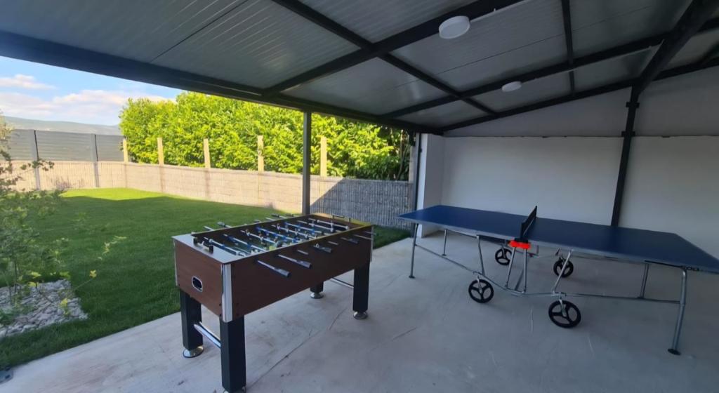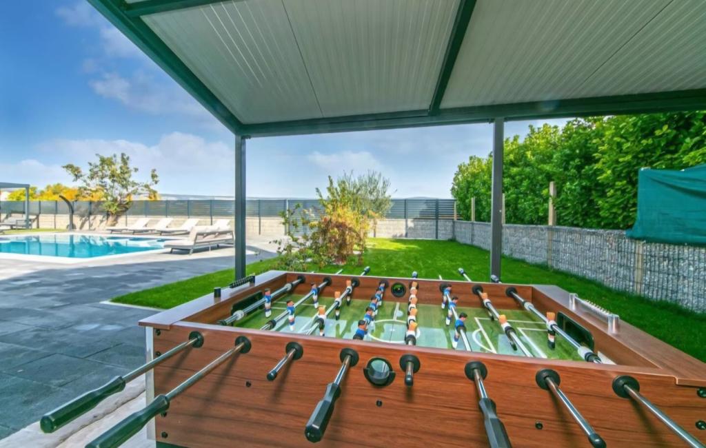 Вилла Olea — это красивая и роскошная вилла, предлагающая своим гостям уникальную атмосферу для отдыха и релаксации в самом сердце региона Имотска, откуда открывается незабываемый вид на Имотское поле и озера Плаво и Црвено езеро. На вилле есть большой собственный пейзажный бассейн, зона отдыха с настольным футболом, теннисным кортом, дартсом и игровой площадкой, а также удобная зона барбекю и развлечений с летней кухней и мини-баром. У бассейна расположены удобные шезлонги, летний душ и беседка для приятного общения и отдыха. Внутри виллы есть 2 полностью оборудованные кухни, 5 ванных комнат, 6 спален с двуспальными кроватями и 2 удобными диванами-кроватями, две просторные гостиные с большими телевизор