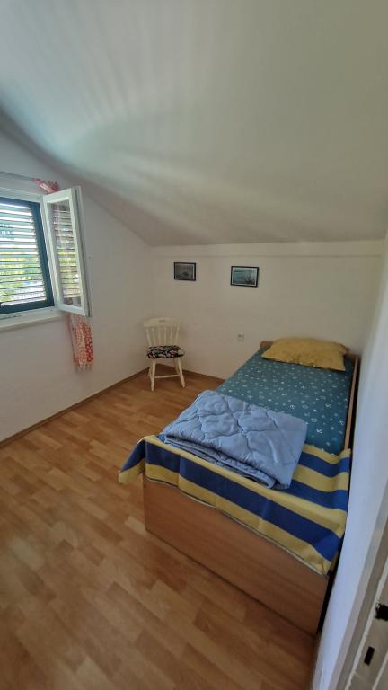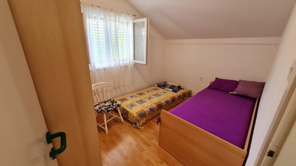 Дом состоит из двух полностью оборудованных апартаментов (на первом и втором этажах) общей вместимостью 8 человек. Апартаменты отдельные, и дом сдается целиком — идеальное решение для двух семей или группы друзей, желающих провести отпуск вместе, сохранив при этом уединение. В каждом апартаменте есть гостиная, кухня, ванная комната, 2 спальни и собственная крытая терраса — идеальное место для утреннего кофе, обеда в тени или вечернего общения. В доме есть бесплатная парковка (макс. 3 машины), Wi-Fi, кондиционер и телевизор в обоих апартаментах. Расположение отлично подходит для поездок в Шибеник (12 км), Водице (10 км) и близлежащие национальные парки Крка и Корнати. Рядом находятся магазин, ресторан и благоус