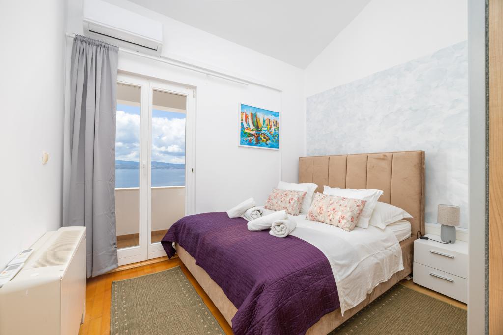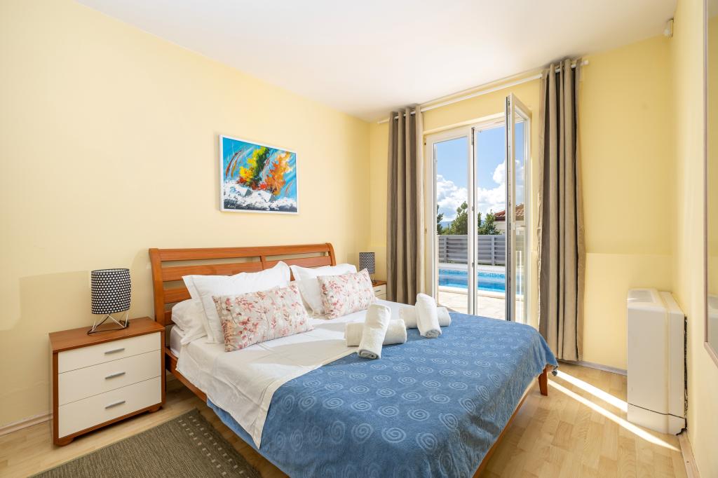 Очень хорошо оборудованная вилла с бассейном и джакузи. Хорошо оборудованная кухня в гостиной на первом этаже: два больших холодильника, тарелки, стаканы, стаканы, миксер, блендер, терка, реально ничего не пропало. Большая терраса с видом на море, где можно удобно посидеть вечером. Два санузла наверху, туалет на первом этаже и еще один санузел на первом этаже – это большой плюс для большого количества отдыхающих. Красивые климатические пляжи совсем рядом. До магазинов около 1 км, до ресторанов около 1 км или 2 км. До Омиша пешком по красивым окрестностям около 4 км. Одна комната без окна, о чем мы не совсем знали, нам досталась плохая кровать, но думаю хозяин подумает о ее замене. В целом, вся группа была очень довольна пребыванием, и мы искренне рекомендуем это место.