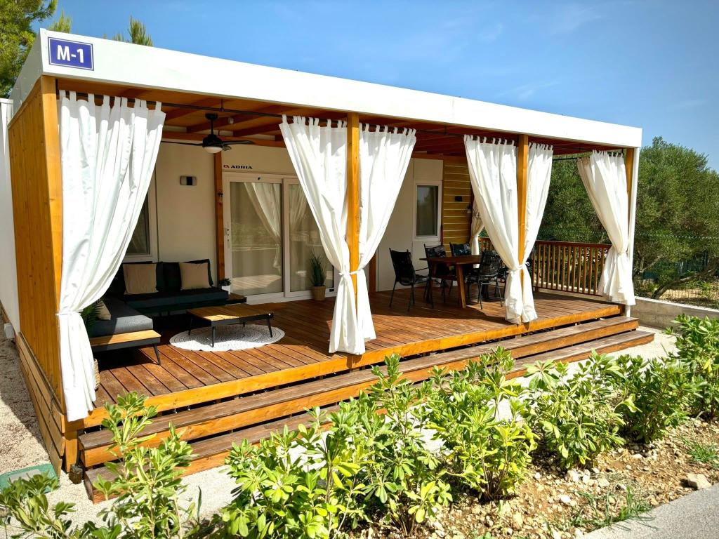 Откройте для себя новый современный мобильный дом в средиземноморском стиле, расположенный в небольшом далматинском городке Оребич (лагерь «Далмата»), в окружении нетронутой природы и золотых пляжей, с разнообразными ресторанами и винодельнями, предлагающими первоклассную кухню и знаменитые вина. Отдохните на террасе площадью 30 м², расположенной в нескольких шагах от бассейна, оборудованной шезлонгами, зоной отдыха на открытом воздухе и всем необходимым для удовлетворения ваших гедонистических желаний.